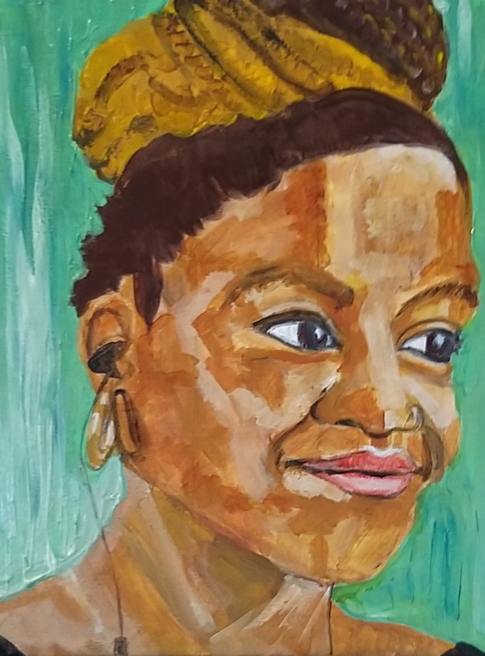 10 and 11. Acrylic on canvas. H. 30cm x W. 22 cm. 2020/2021. Oti Mbuse was painted during a 4 hour paint along session of Sky Arts’ Portrait Artist of the Week.