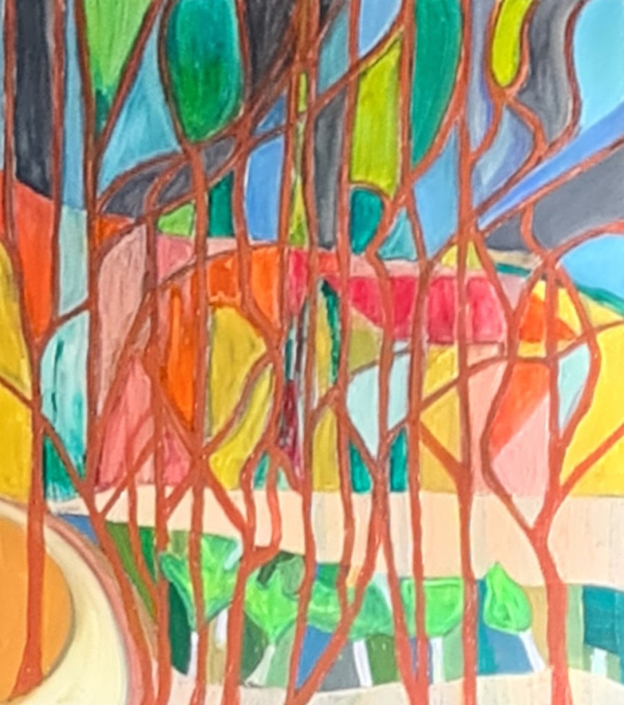 I am also experimenting with using mosaic in my own practice, in a mosaic glass landscape, echoing my canvases, concerning light and transcendence in nature.