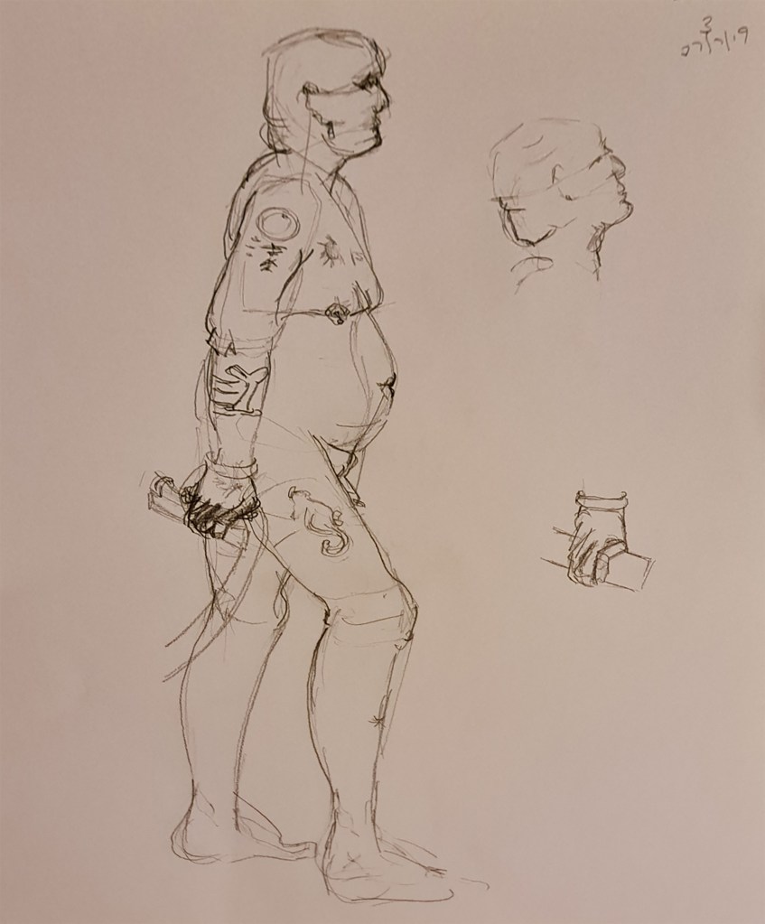 12, 13. Figure Drawing at Unique Cottage Studio, Spalding, Lincolnshire. Pencil on watercolour paper. A3. 2019.