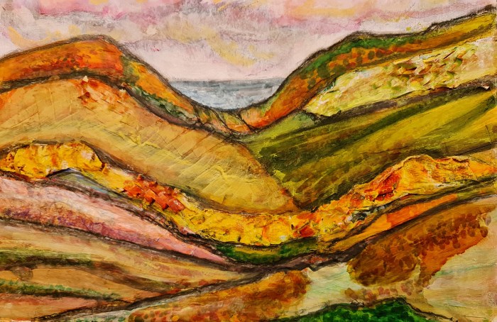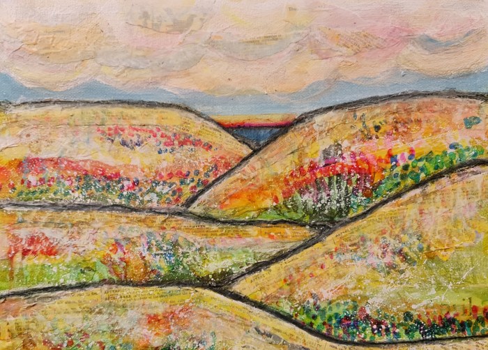 landscapes through the seasons Abstract landscapes in mixed media on canvas, W 25cm x H 22cm Spring Summer Autumn Winter